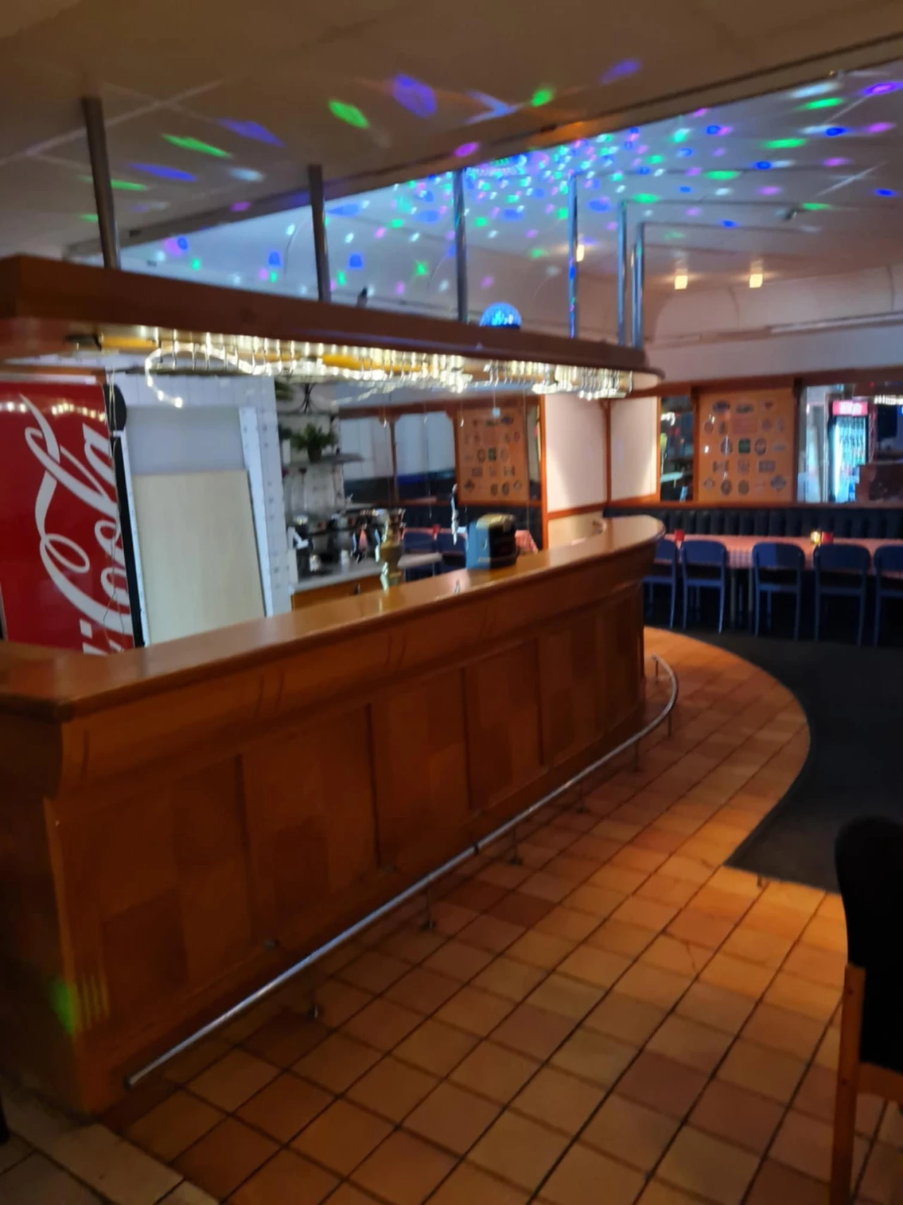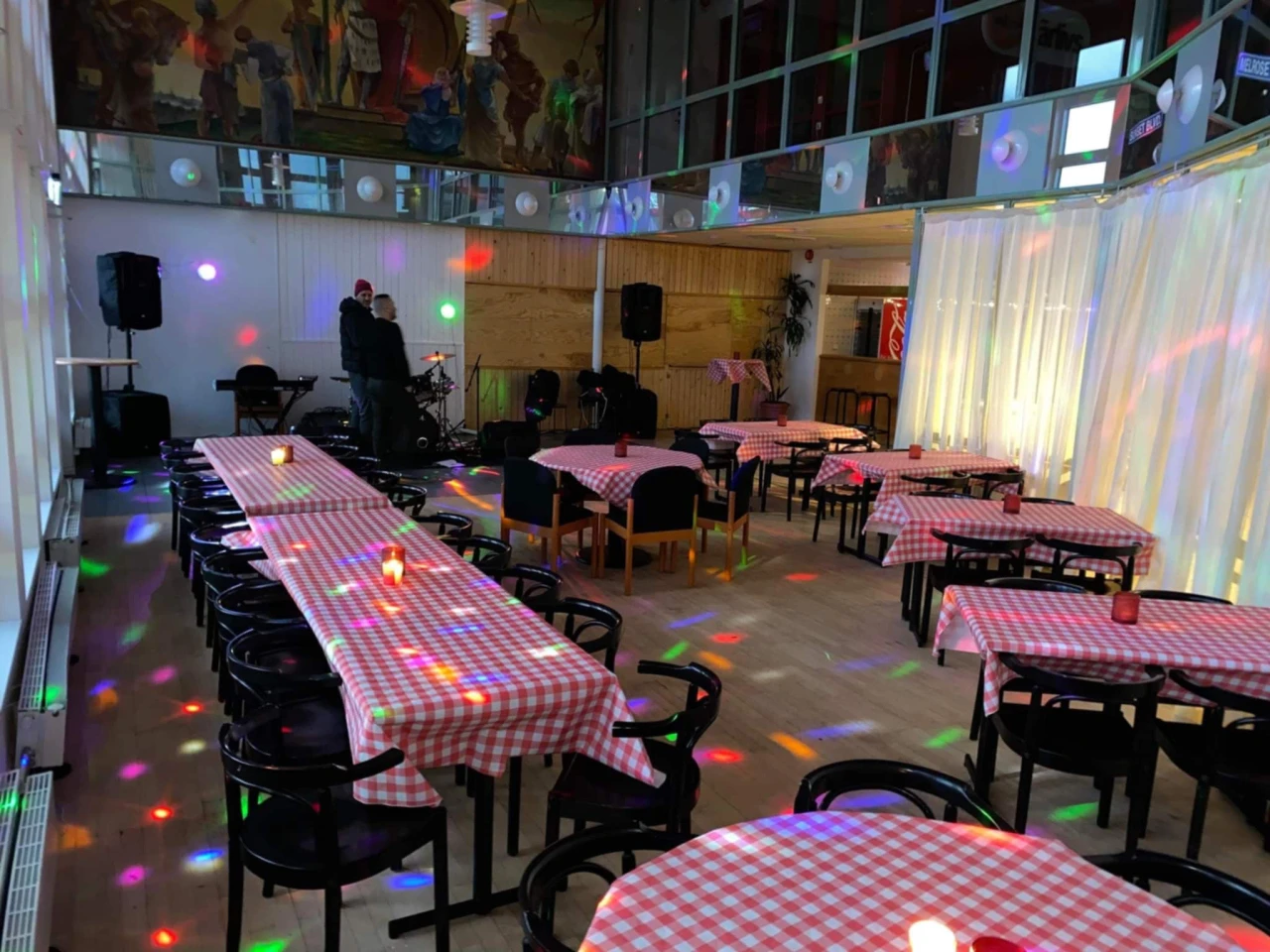 Vår restaurang är mycket rymlig och högt i tak. Det finns 100 sittplatser och en trevlig danshörna. Och det finns ett stort utrymme för barnen att leka eller lugnare samtal i en annan avdelning.
